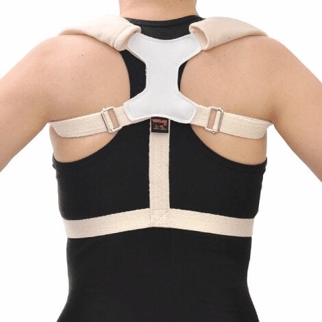 Órtesis rígida que ejerce función de propiocepción para la extensión de la columna dorsal. Soporte torácico de T1 a T8. Reatas en forma de ocho en algodón antialérgico con protectores móviles acolchados para mayor confort