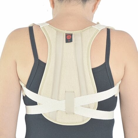Órtesis rígida que ejerce función de propiocepción para la extensión de la columna dorsal. Soporte torácico de T1 a T8. Reatas en forma de ocho en algodón antialérgico con protectores móviles acolchados para mayor confort, con trabilla graduable para ajustar a cualquier talla